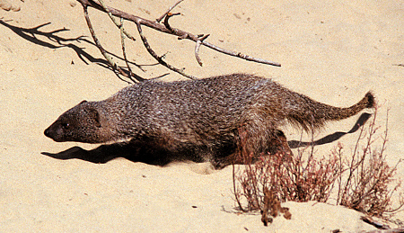 El meloncillo, representado en la Península Ibérica por la subespecieHerpestes ichneumon widdringtonii, es la única mangosta europea. Es fácil de reconocer por su cuerpo alargado y paticorto y su cabeza fina, así como por su larga cola, que puede llegar a medir hasta 45 cm, ancha en su arranque y rematada en un mechón negro.